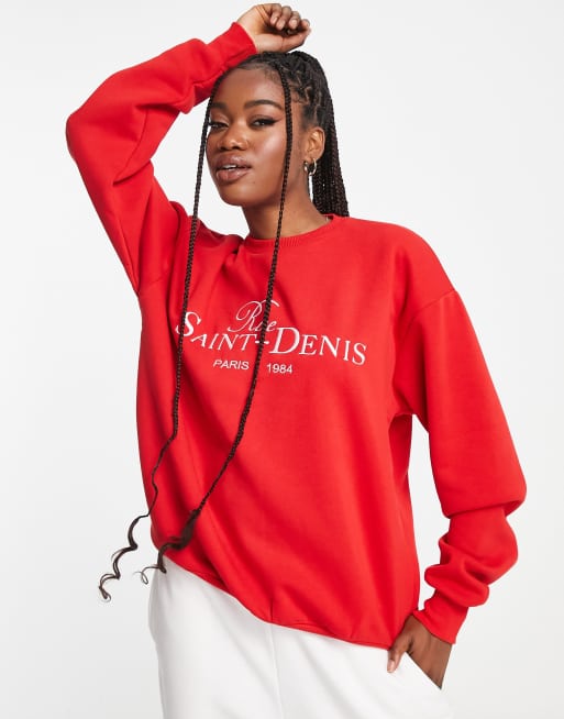 Product Item: Red embroidered store sweatshirt
